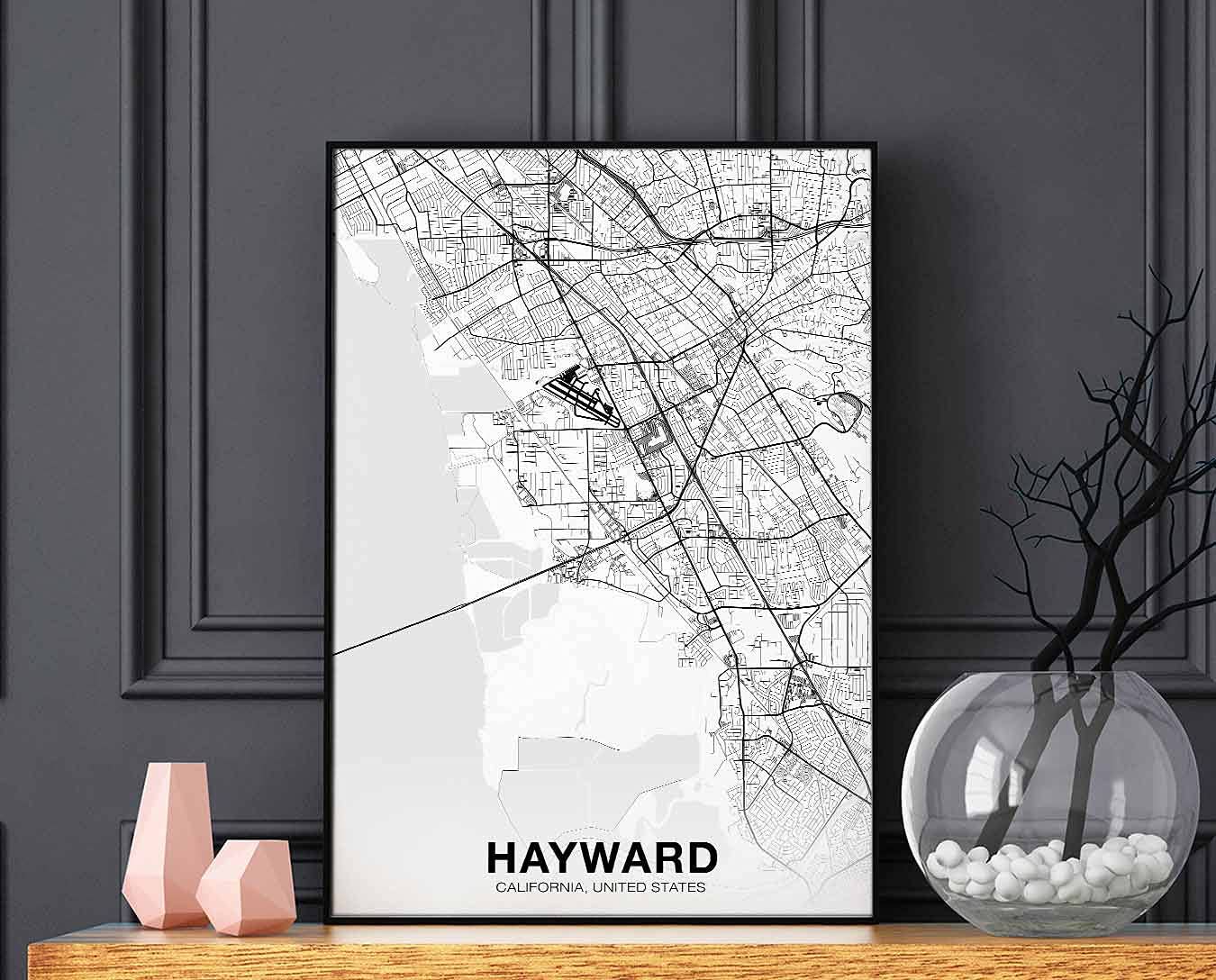 Hayward California USA America Map Wall Art Canvas Print Poster