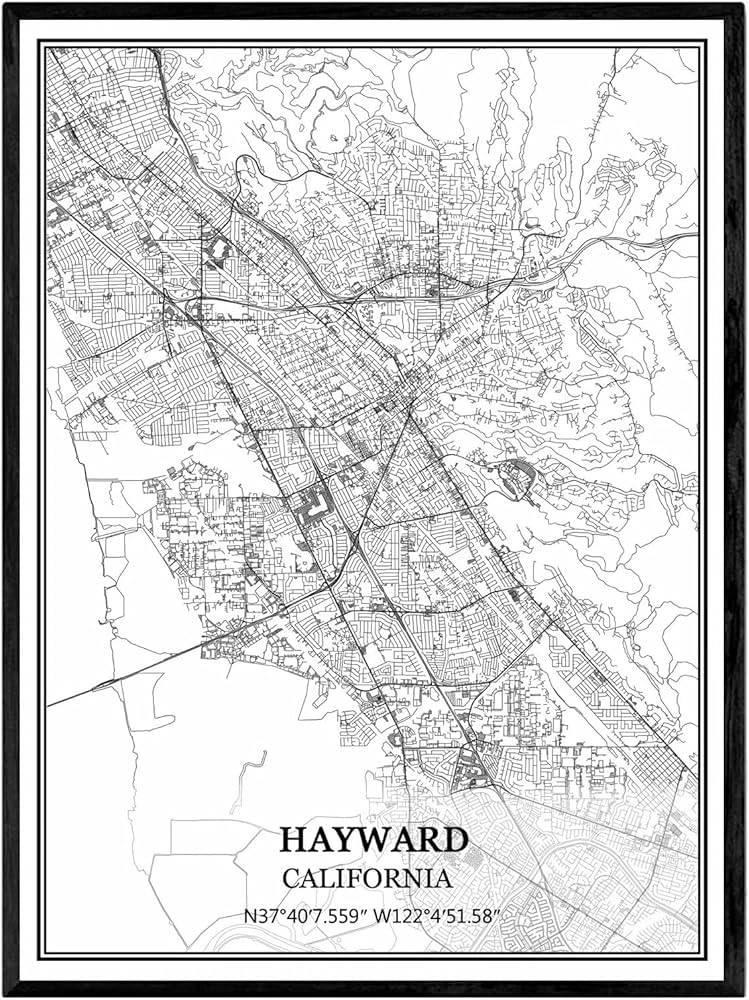 Amazon.com: Hayward California Ca USA Map Poster Black White